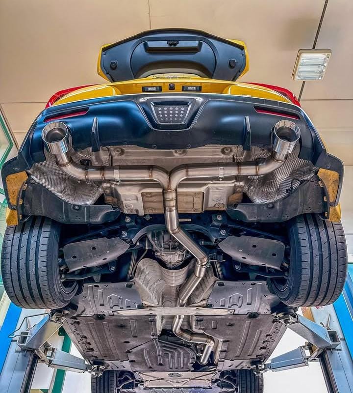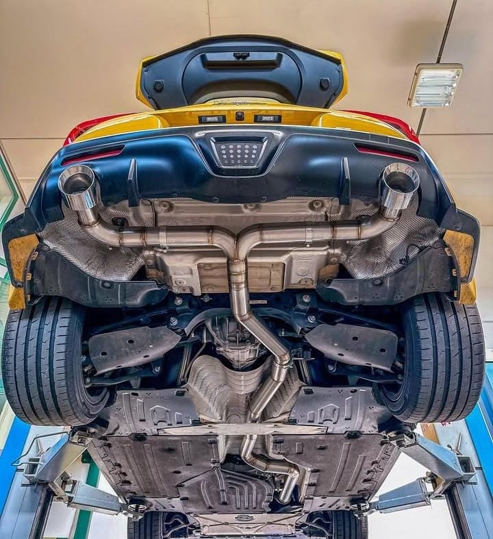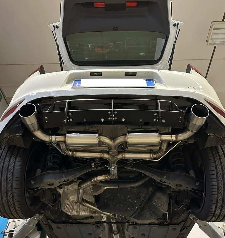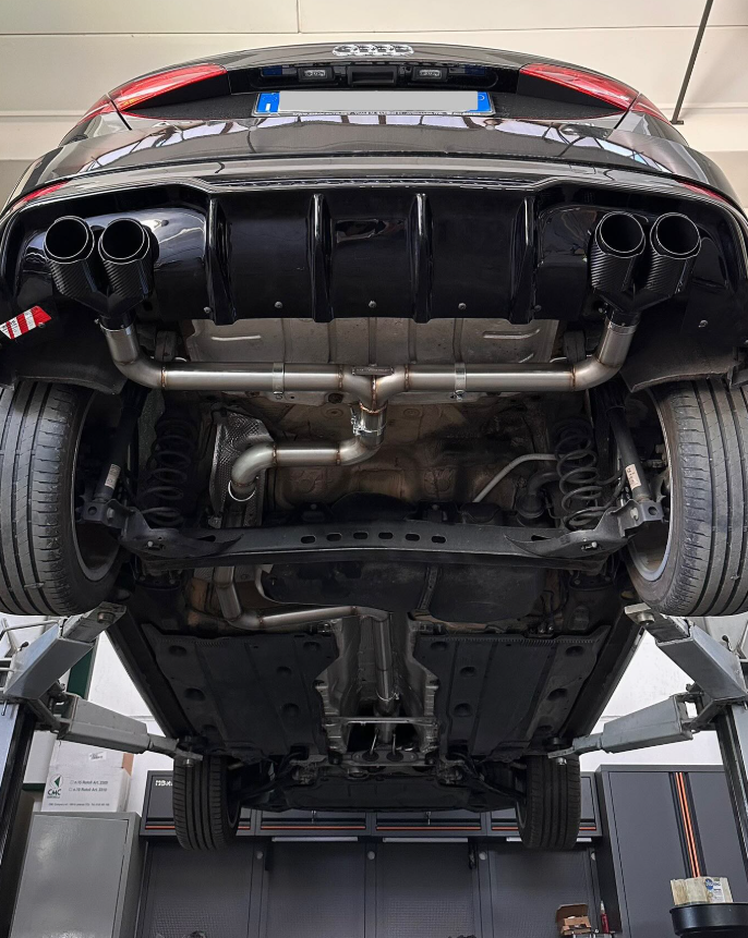 rivisto il sistema di scarico catback, sostituito con sistema diretto in acciaio inox da 76 mm.